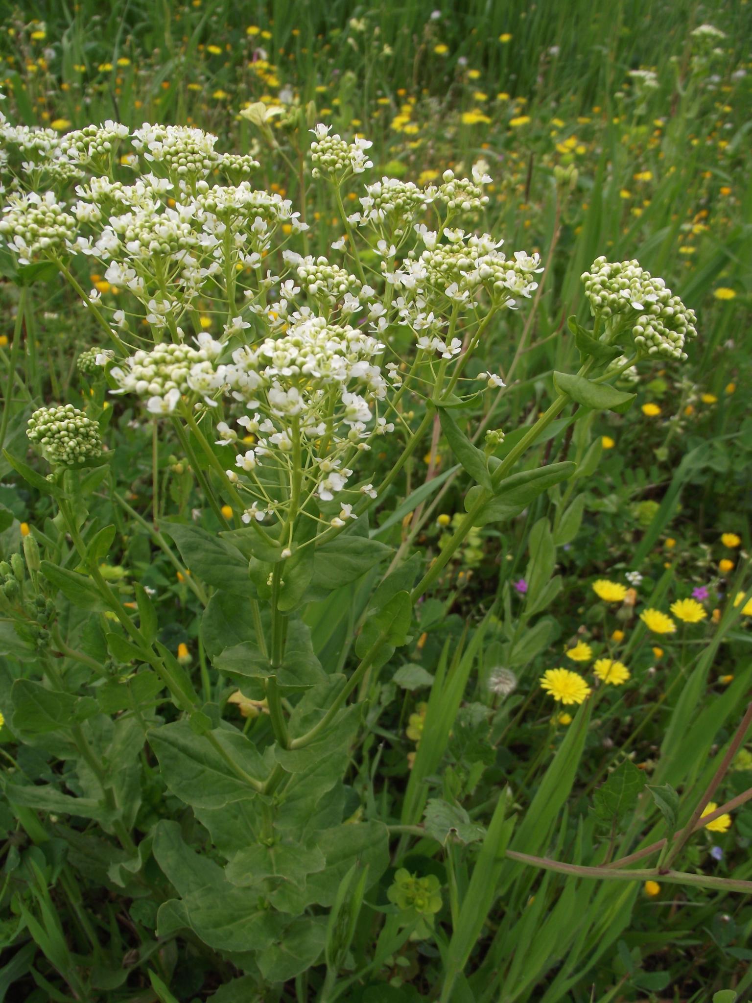 Lepidium draba L., yaygın olarak beyaz tepeli, ağarmış tere veya Thanet tere olarak bilinen, Brassicaceae (turpgiller) familyasından rizomatöz çok yıllık çiçekli bir bitkidir. Batı Asya ve güneydoğu Avrupa'ya özgü olmasına rağmen, dünyanın birçok bölgesinde invaziv bir tür olarak kabul edilir. Bu makalede, Lepidium draba'nın özellikleri, yayılışı, ekolojik etkileri ve kontrol yöntemleri hakkında detaylı bilgiler bulacaksınız.